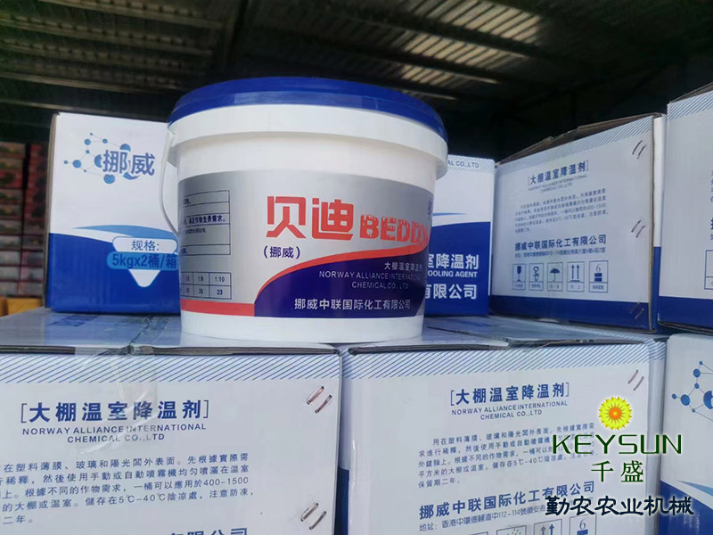 山東禹城勤農(nóng)大棚降溫劑能有效解決蔬菜大棚內(nèi)強(qiáng)光和高溫問題,為作物提供理想的溫光生長環(huán)境。降溫劑在溫室表面形成白色涂層,將太陽直射光轉(zhuǎn)變?yōu)樯⑸涔?,并有效反射產(chǎn)生熱量的紅外光,從而起到遮陽、降溫、防止棚膜老化